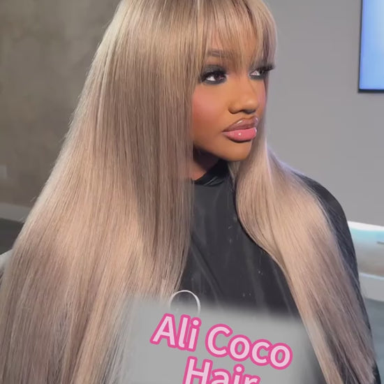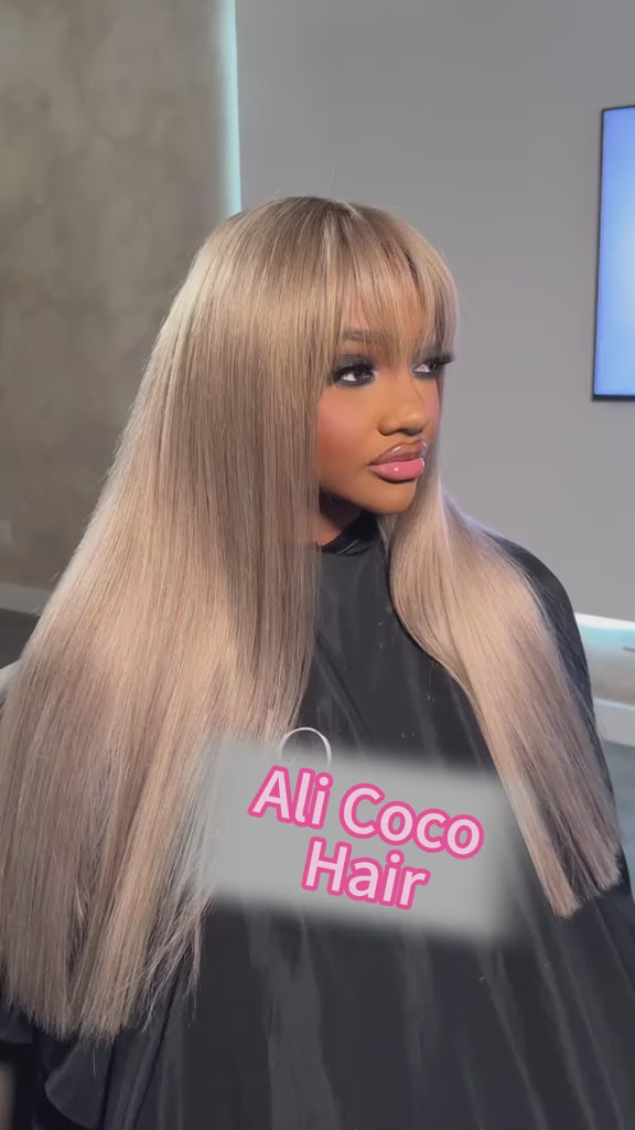 Ash Blonde Straight with Bangs 13x4 HD Transparent Lace Front Wig - 200% Density Human Hair, Colored Wig