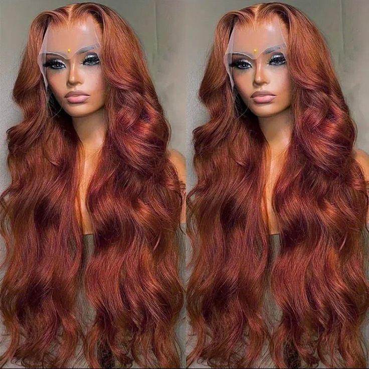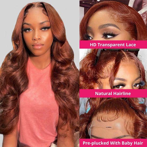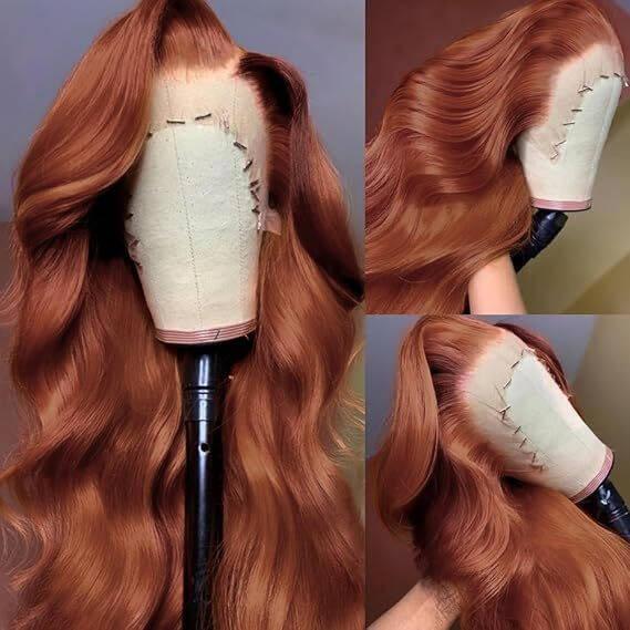 Ginger Orange Body Wave HD Transparent Lace Front Wig - 180% Density Human Hair, Colored Wig