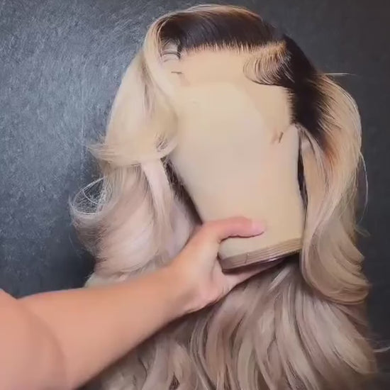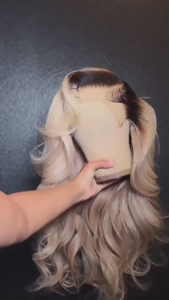 Milk Tea Ombre Ash Blonde Body Wave 13x6 HD Transparent Lace Front Wig - 180% Density Human Hair, Colored Wig