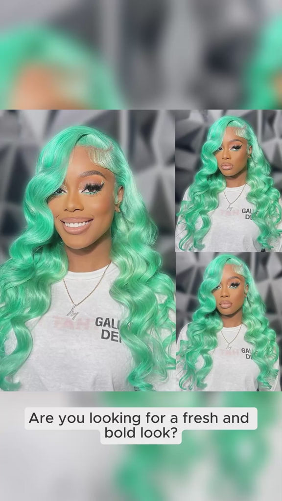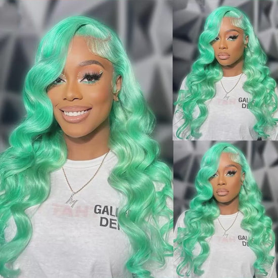 Mint Green Body Wave 13x4 HD Transparent Lace Front Wig - 180% Density Human Hair, Colored Wig