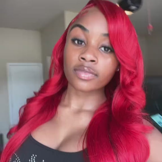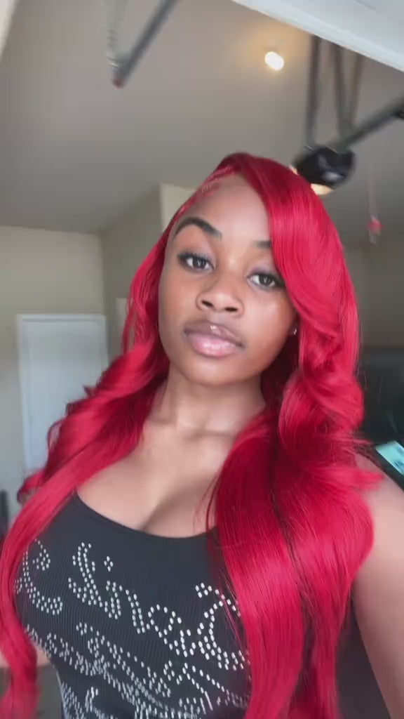 Hot Star Red Color 13x6 HD Transparent Lace Front Wigs with Baby Hair for Women Straight and Body Wave Wig 180% Density